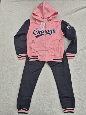 Speciaal voor meiden die van stijl én comfort houden! Deze mooie trainingspakken zijn uitgevoerd in stoere, trendy kleuren en hebben een opvallende "Chicago" opdruk.
